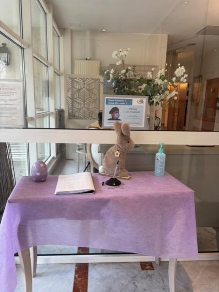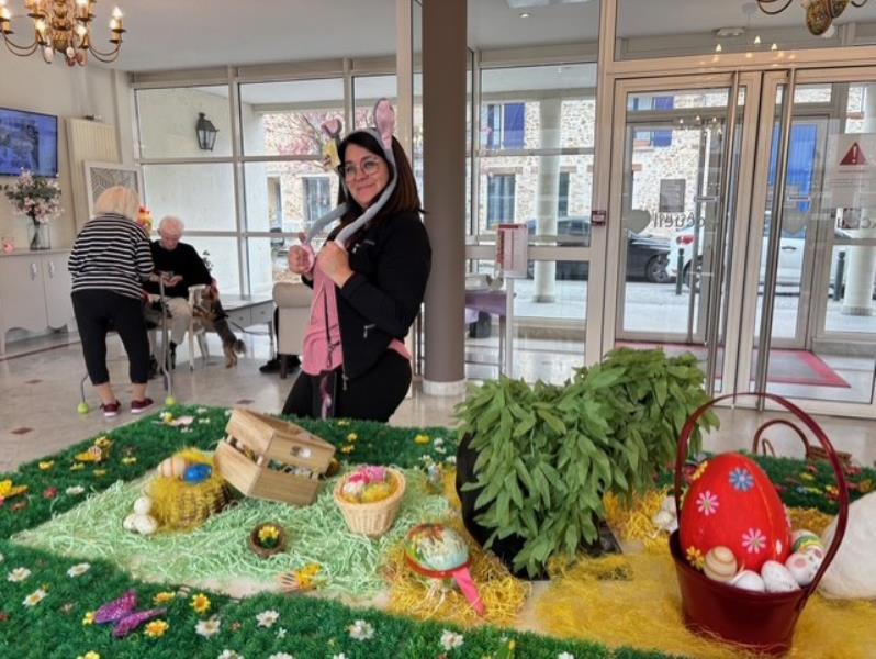À l’occasion des fêtes de Pâques, notre établissement s’est paré de ses plus belles couleurs printanières. Le grand hall de la résidence a été entièrement décoré, offrant un cadre chaleureux et festif à tous nos résidents, leurs familles et nos équipes. Oeufs colorés, lapins et compositions printanières viennent illuminer cet espace de vie partagé.