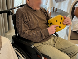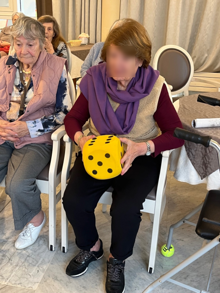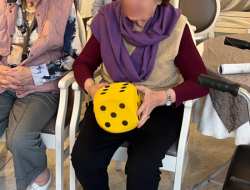 L’après-midi s’est poursuivie avec un jeu amusant : lancer un gros dés en mousse et attraper le nombre correspondant de boules de neige, représentées par des balles blanches.
